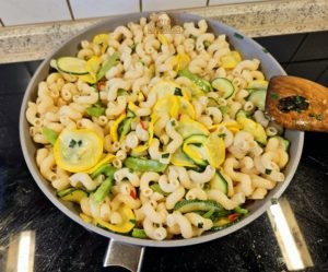 • Nudeln zum Gemüse geben.