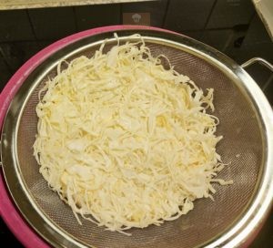 - Abseihen, auf ein sauberes Geschirrtuch geben und das Wasser gut ausdrücken.