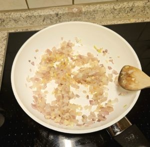 - Mit wenig Öl in einer Pfanne glasig dünsten.