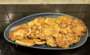- Von beiden Seiten goldbraun ausbacken, auf Küchencrepe abfetten und auf einer Platte warmstellen bis alle Küchle fertig sind.