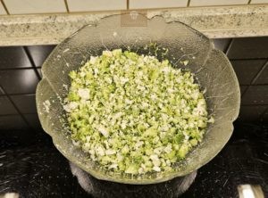 • Broccoliröschen ganz fein vom Strunk schneiden (Strunk anderweitig verwendet, z.B. für Brühe).