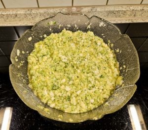 • Blumenkohlröschen ebenfalls sehr klein schneiden.