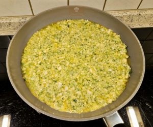 • Die Masse in die Pfanne geben und mit geschlossenem Deckel ca 15 Minuten bei mittlerer Hitze braten.