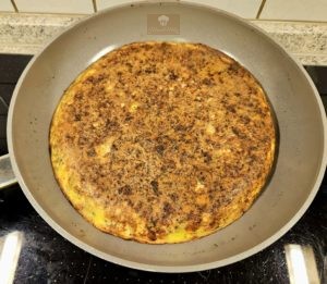• Das Omelett mit Hilfe eines Tellers wenden.