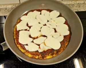 • Anschließend die Mozzarellascheiben darauf verteilen.