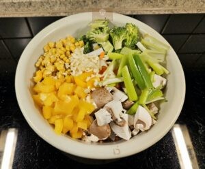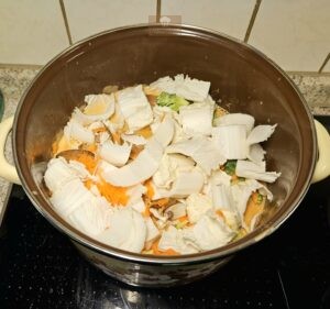 - Gemüse dazugeben und bei mittlerer Hitze 4 Minuten köcheln lassen.