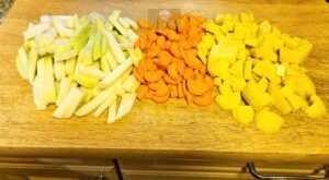 - Kohlrabis schälen und in kleine Stifte schneiden.