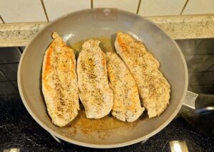- Putenschnitzel darin von beiden Seiten je ca 3 Minuten braten.
